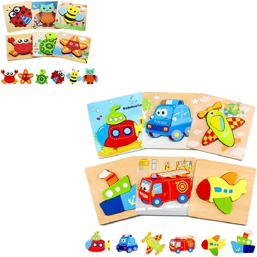 Each puzzle is 5.8 x 5.8 x 0.4 inches, thick enough for toddlers to pick up and place effortlessly. These puzzles are an excellent way to encourage sensory stimulation and brain development in children while playing, making them an excellent gift for 1 to 3-year-old boys and girls.